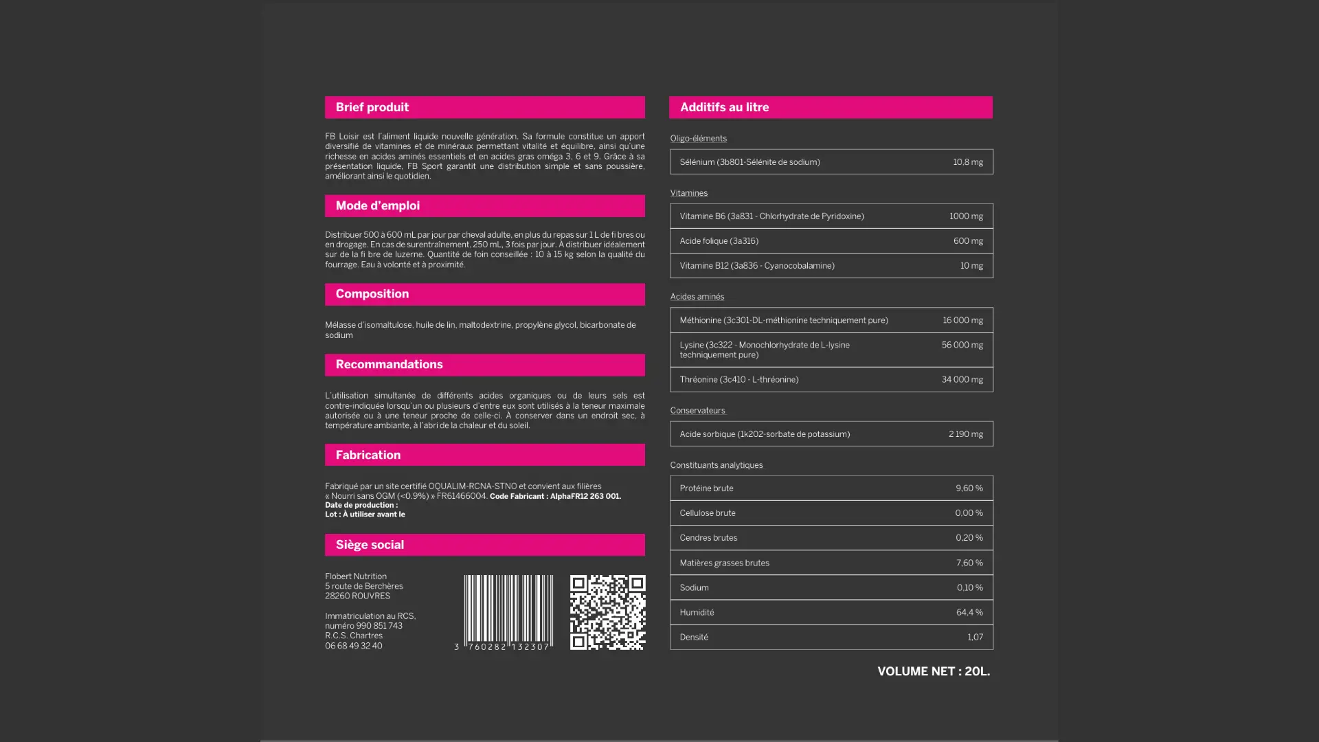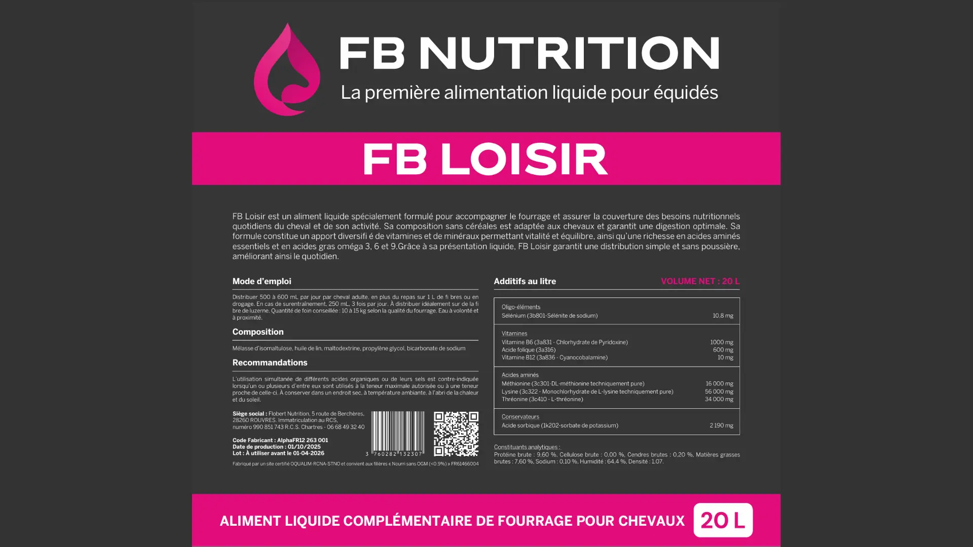 FB Loisir est l’aliment liquide nouvelle génération. Sa formule constitue un apport